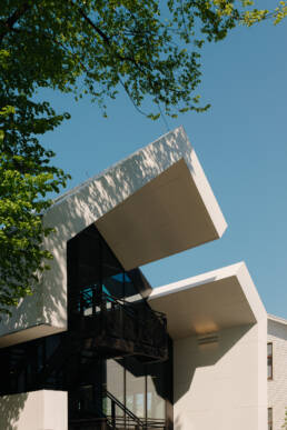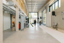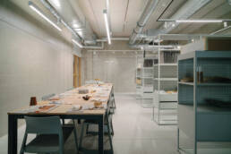 The most remarkable feature of this building is the large, two-story monumental studio, which also opens to the outside and allows for the creation of extremely large artworks. The entire building is filled with various studios, and on the top floor there are also a few cozy classrooms. In this building, there were no strict constraints, rather, we followed the logic of “less is more.” All the color and life come from the students and their work.