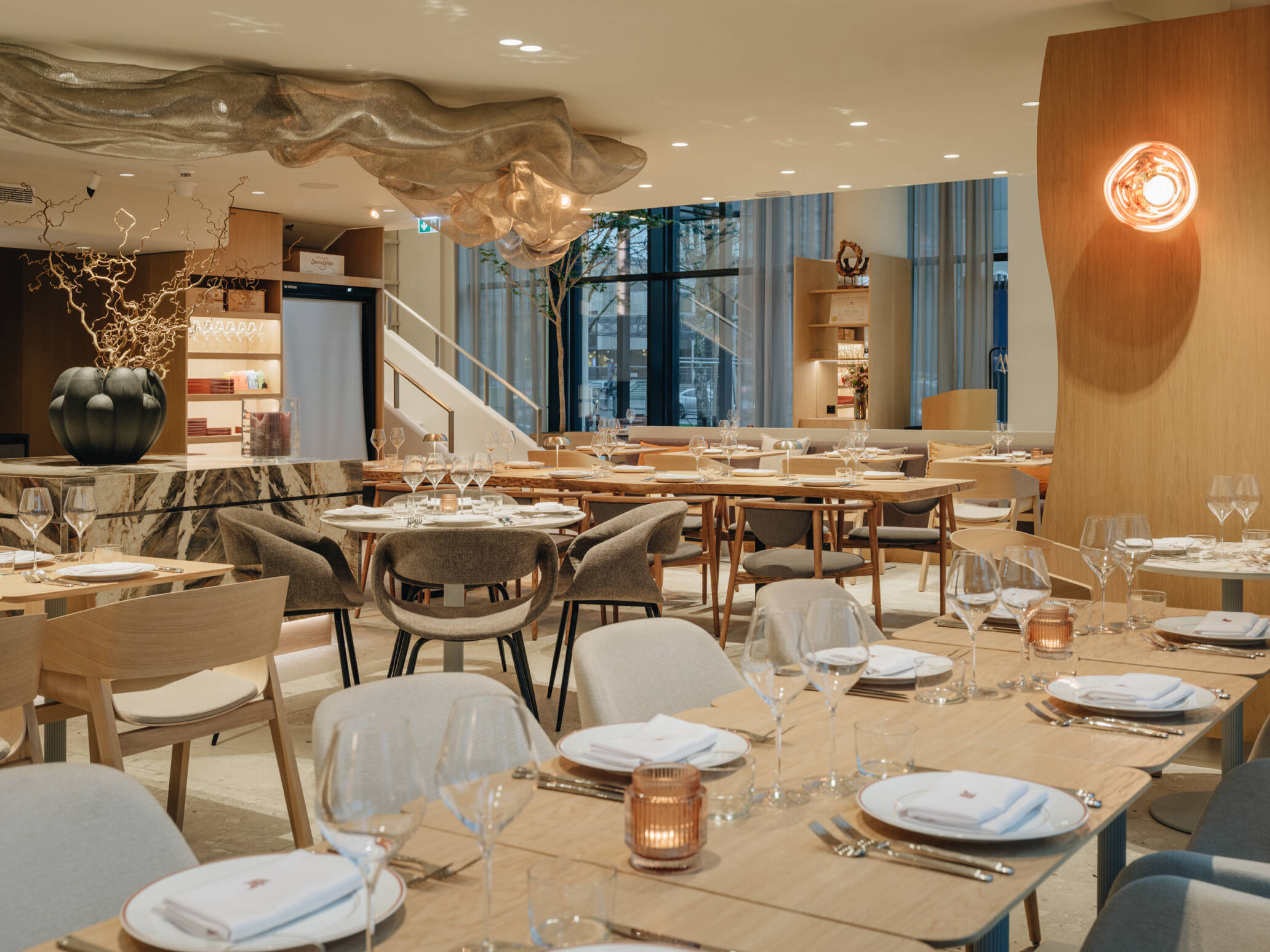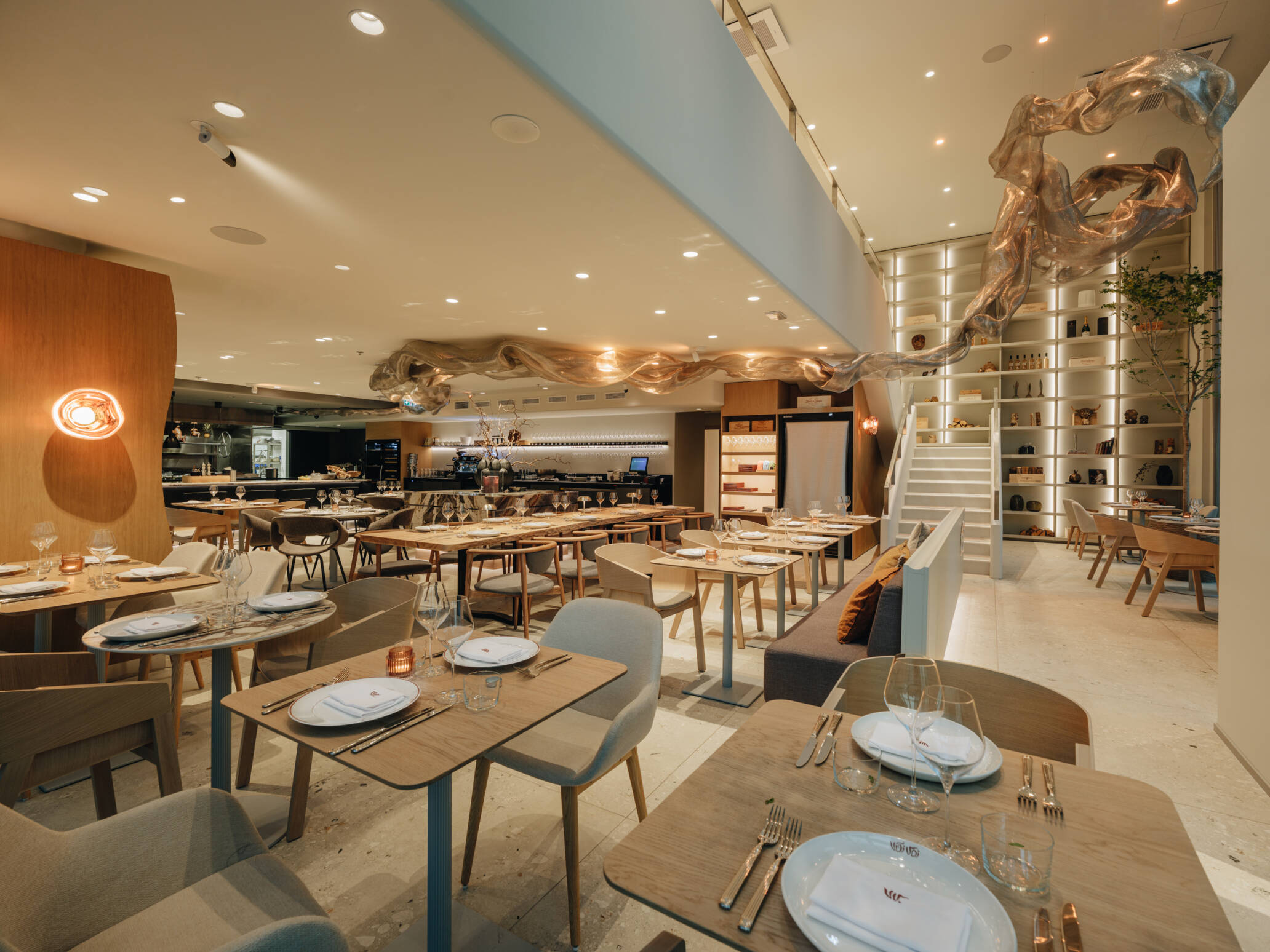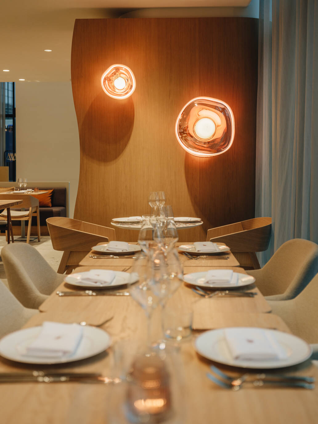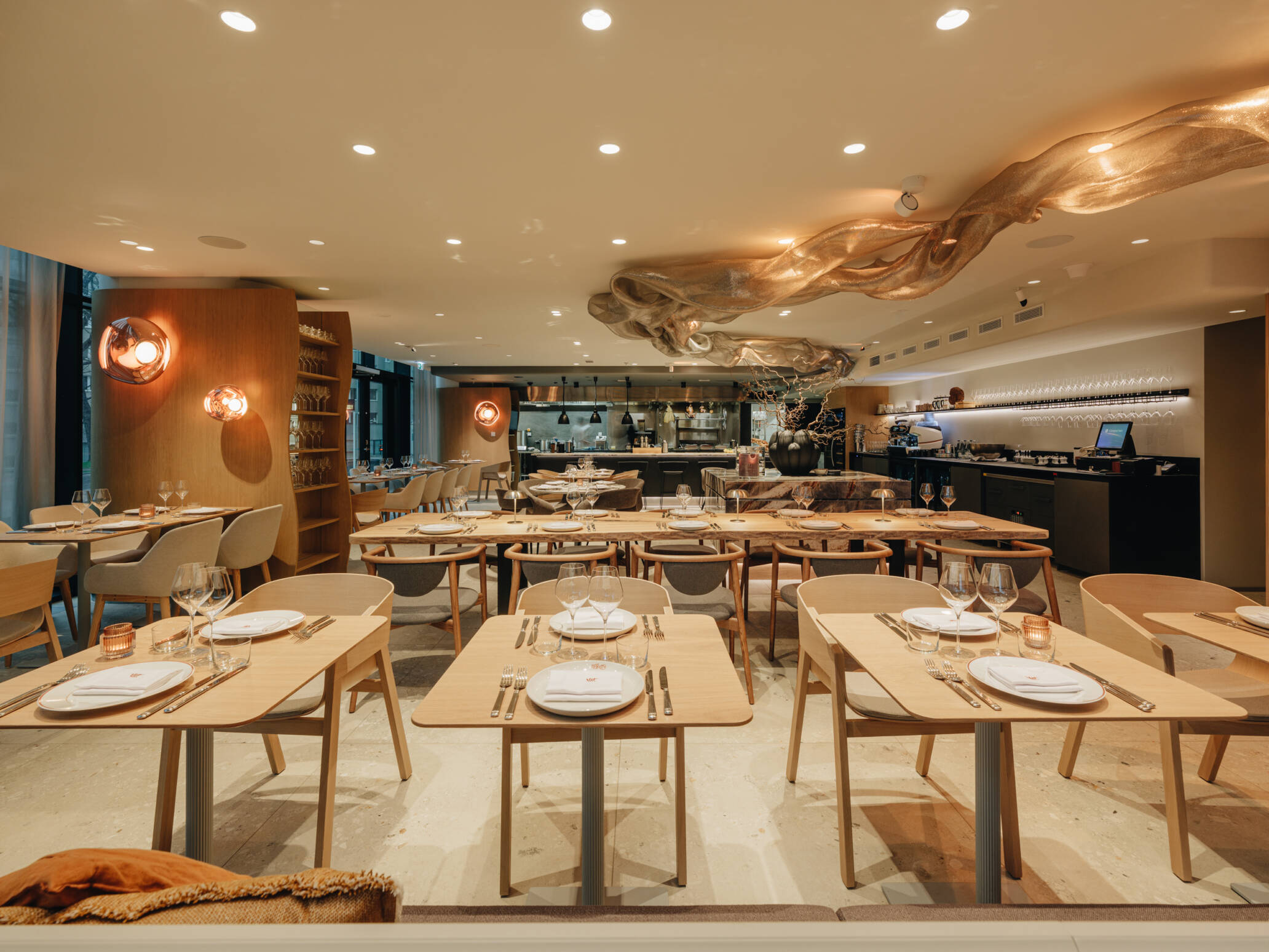 Oluline oli kujundada materjalidega mahe ja sume interjöör, mis kutsub külastajat laua taga kokku saama ja toitu nautima. Seetõttu sai ka eraldi tähelepanu selle projekti puhul valgustus lahendus, mis võimaldab päevase, õhtuse ja öise režiimiga ruumi üldmuljet ja miljööd muuta.
